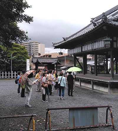 9月13日シルバー人材センター主催の観光ガイド養成講座第8回として膳所城跡公園で実地研修が行われました。参加者14名は2班に分かれ、膳所歴史ガイドクラブの指導をうけながら、それぞれが得意とする地域や場所を熱心に説明していました。講座はあと2回おこなわれます。