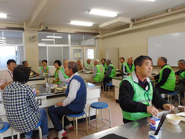 10月31日、子どもたちの登下校を見守る「ひまわり隊」の皆さん21名が、膳所小学校で授業参観と給食の試食を行いました。
